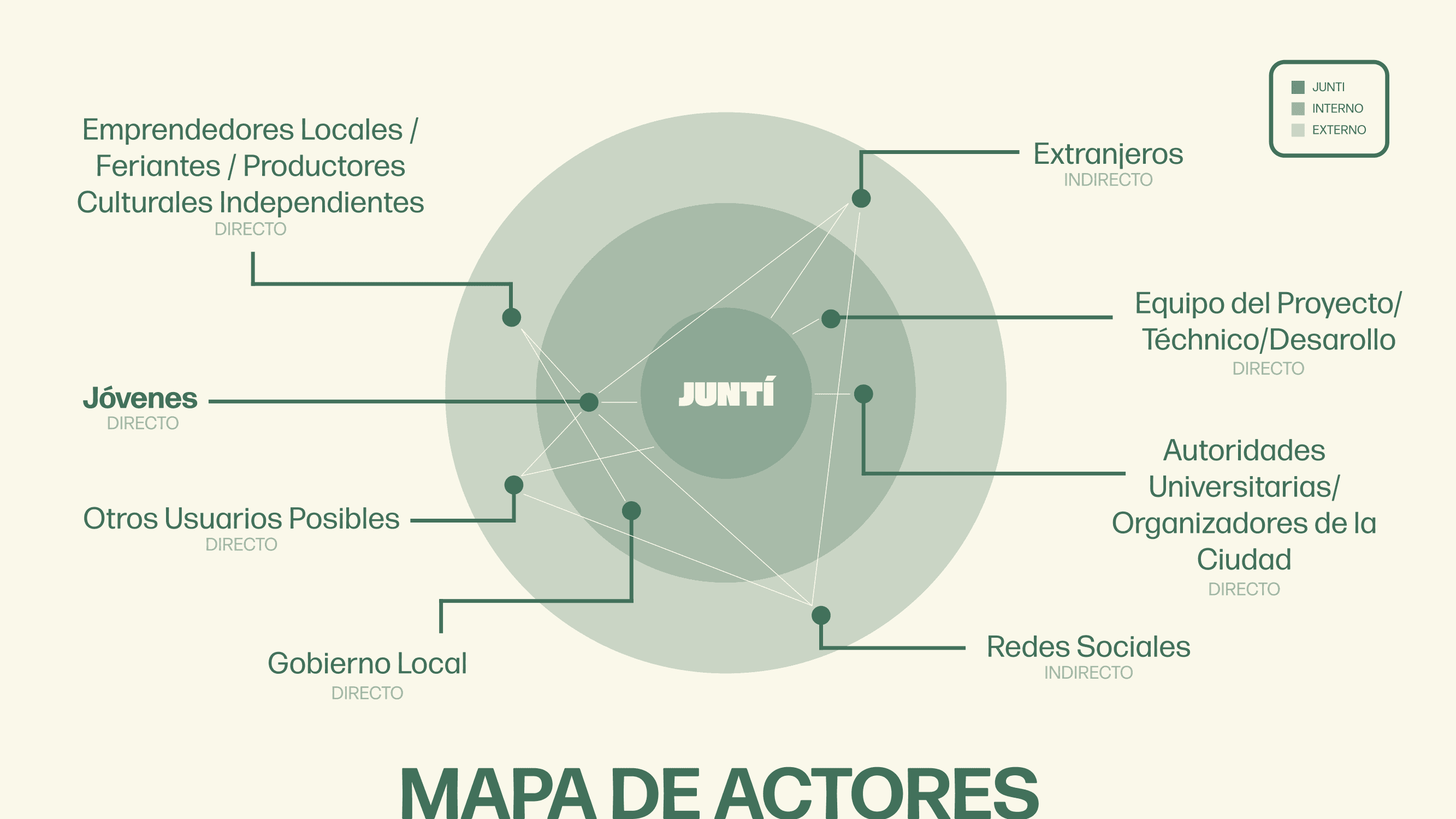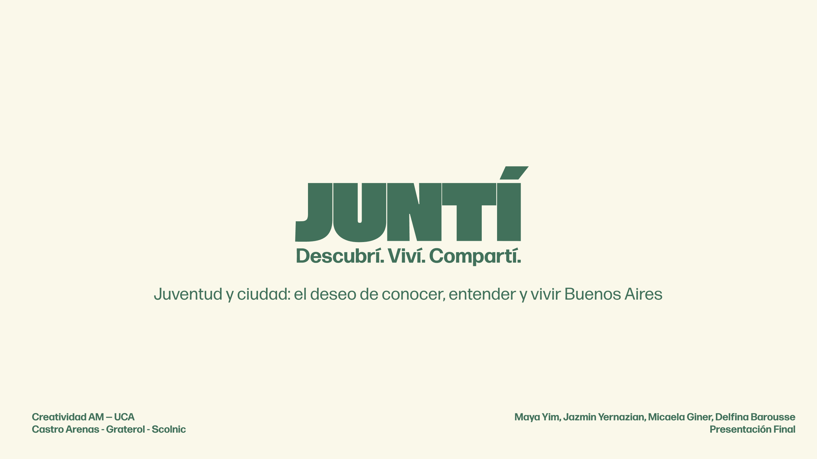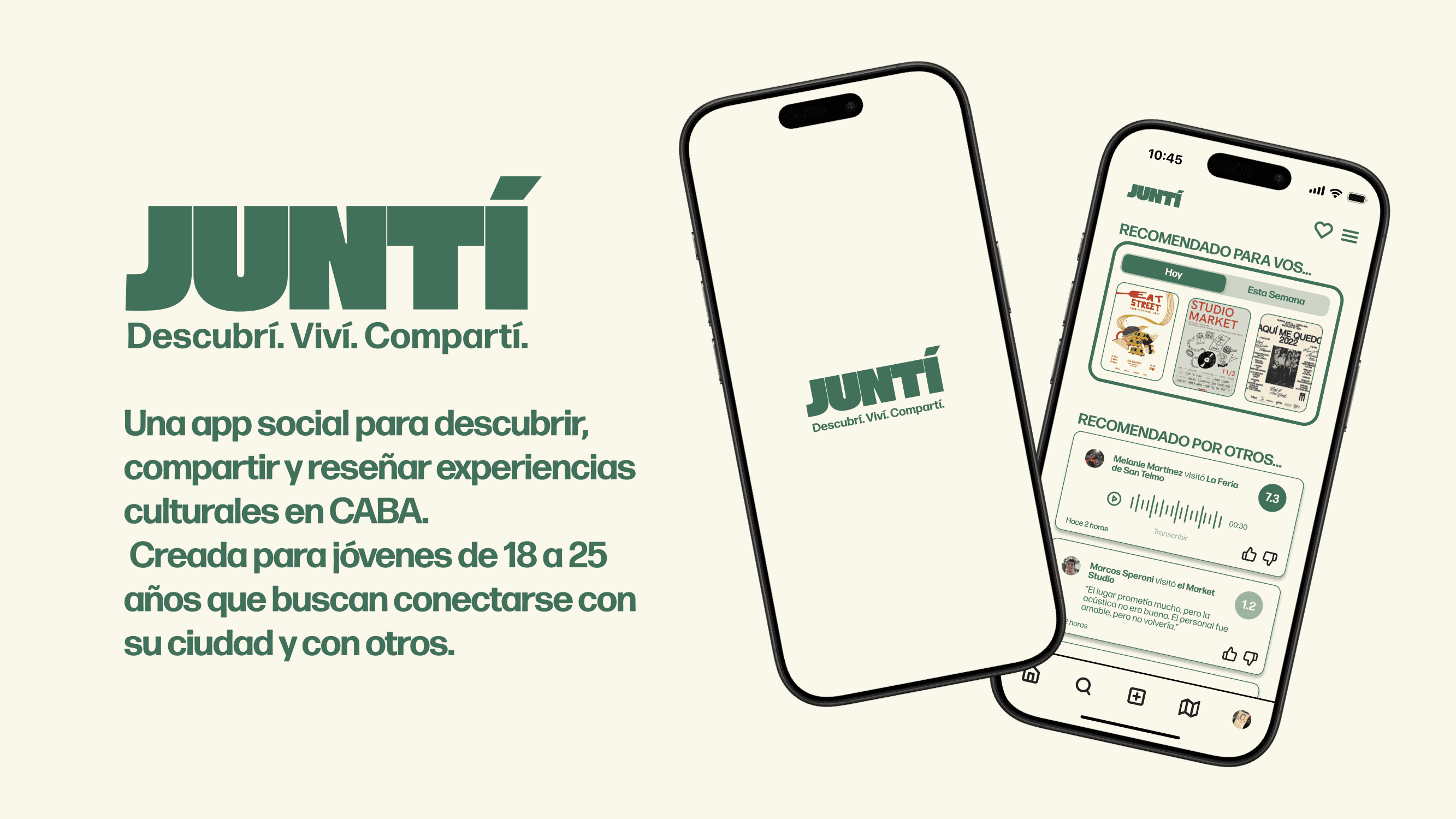Juntí surgió como respuesta a la desconexión entre los estudiantes y sus propias universidades y las culturas de la ciudad. Este proyecto no pasó de la fase de investigación. Un proyecto futuro es el desarrollo de wireframes y prototipos.