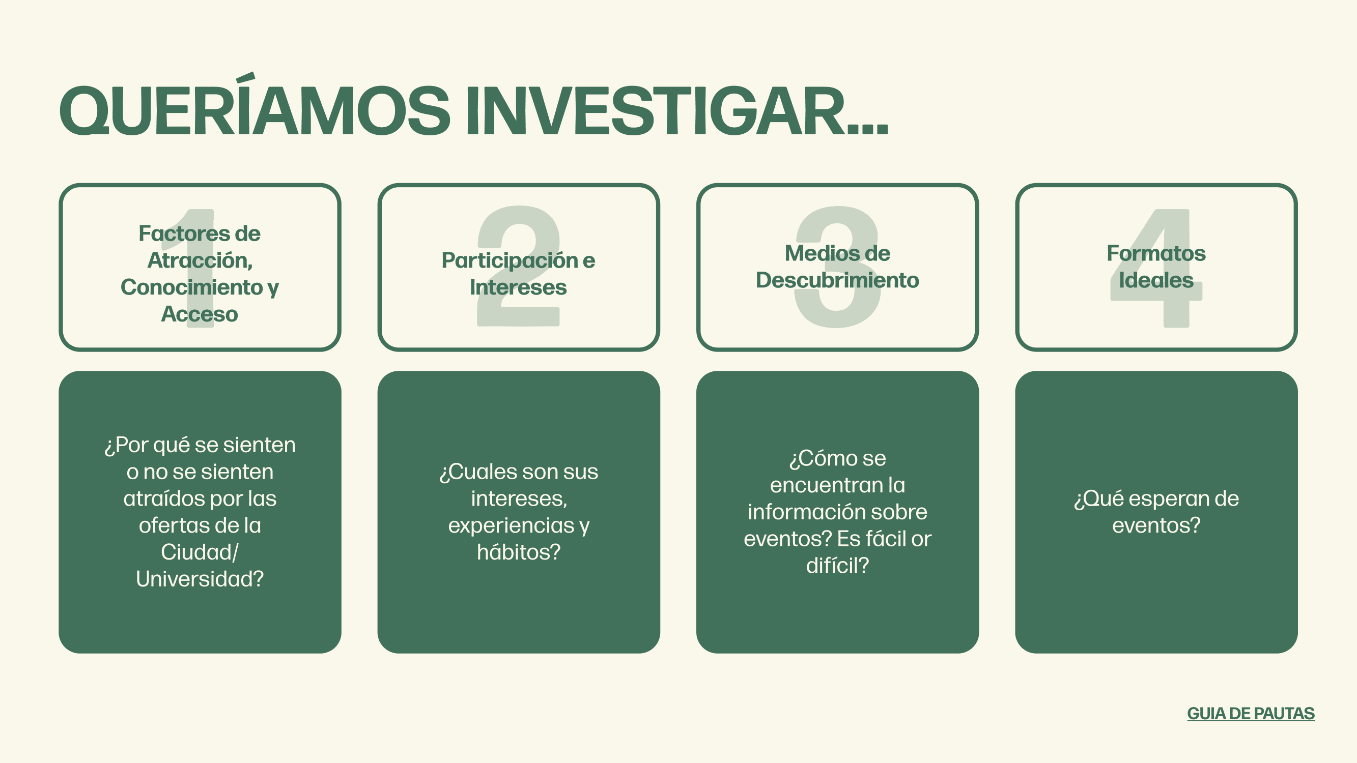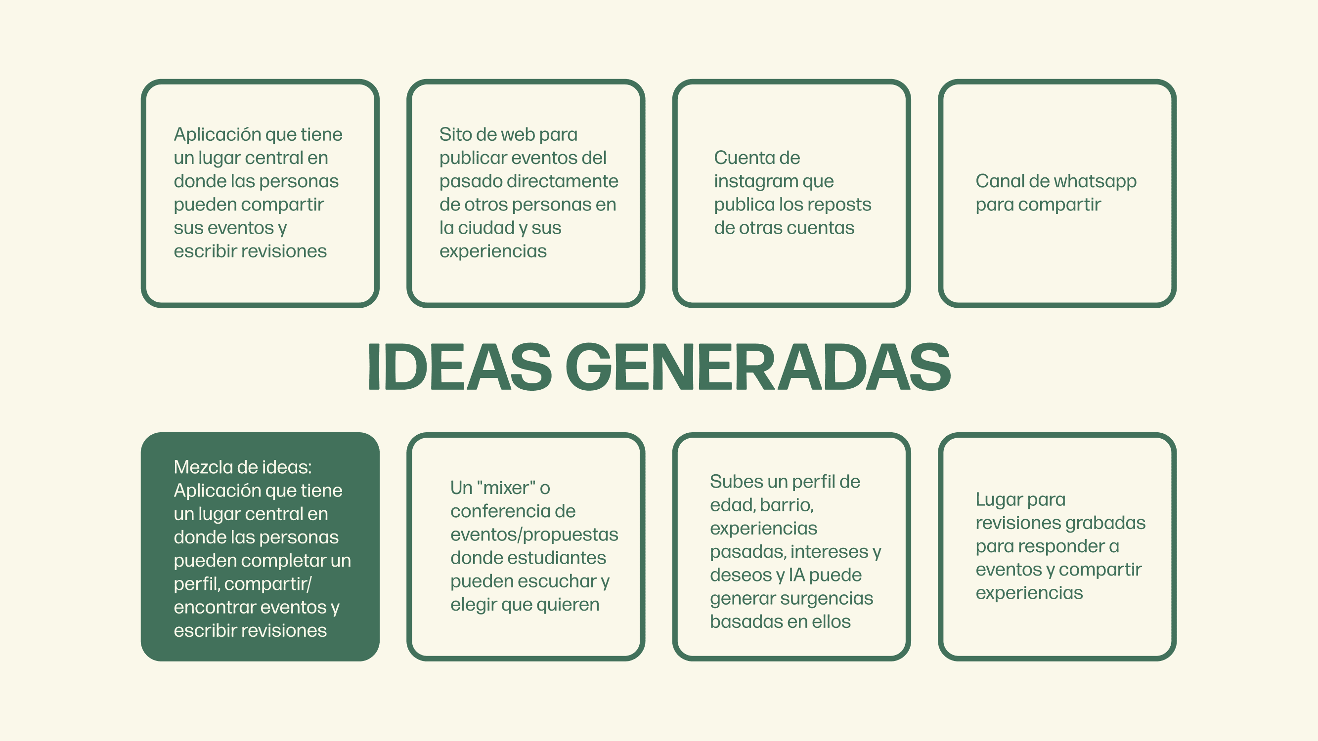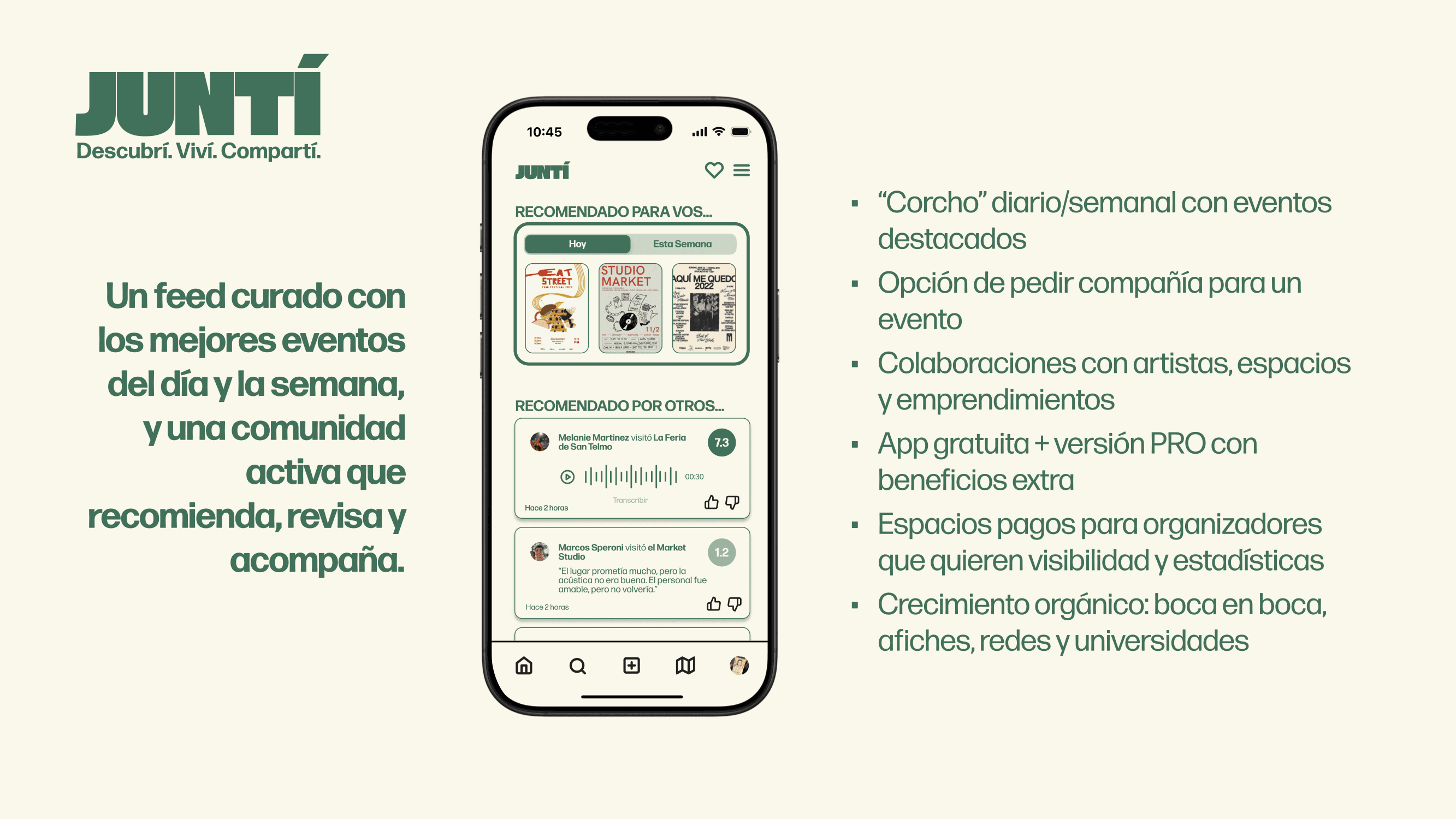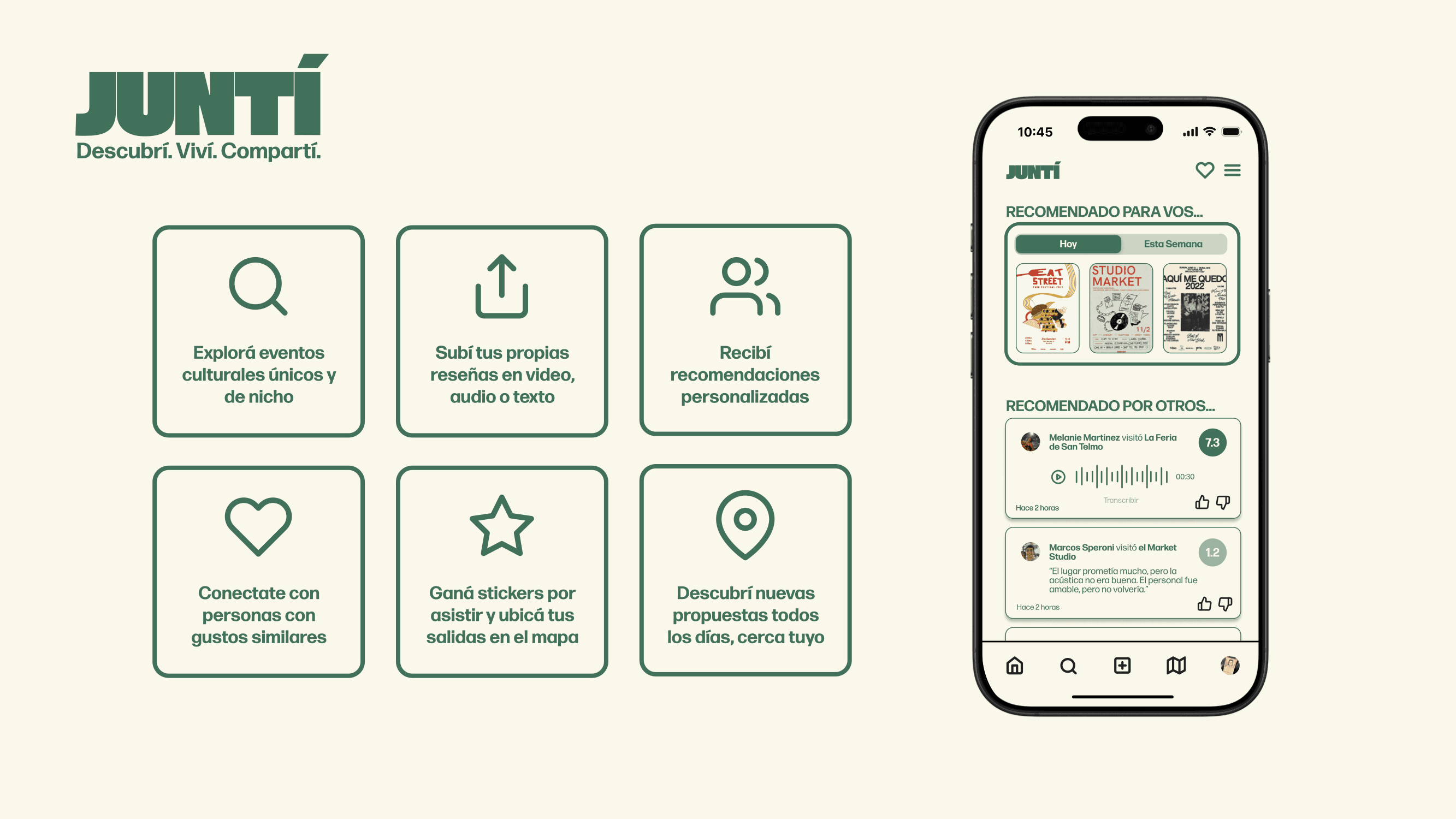 Juntí surgió como respuesta a la desconexión entre los estudiantes y sus propias universidades y las culturas de la ciudad. Este proyecto no pasó de la fase de investigación. Un proyecto futuro es el desarrollo de wireframes y prototipos.